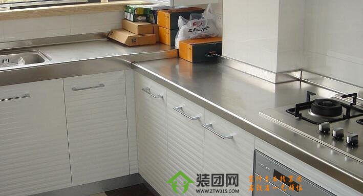 4、不锈钢台面:即不锈钢金属材质的厨房台面。